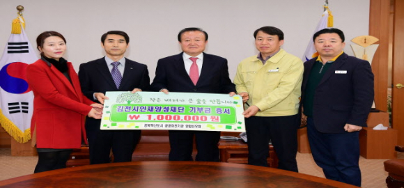 김천의 교육발전과 글로벌 인재육성을 위해 경북혁신도시 공공이전기관 연합신우회(회장 김원호)에서 김천시인재양성재단(이사장 박보생)에 장학기금 일백만원을 기탁했다.