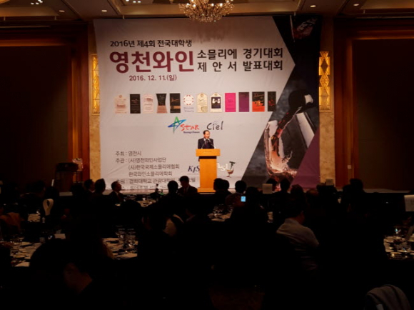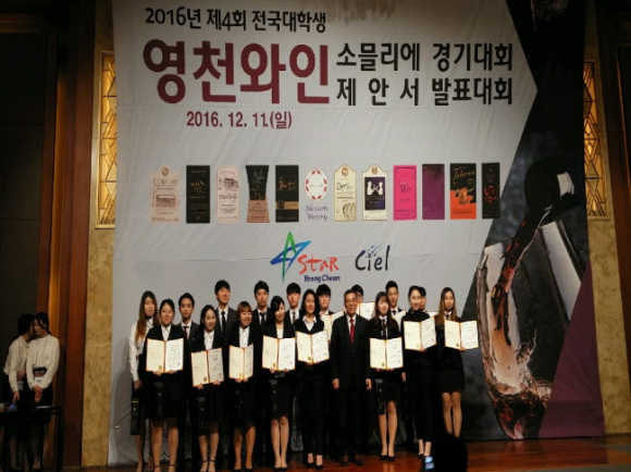 영천시(시장 김영석)는 지난 11일 서울 롯데호텔에서 20개 대학교 250명, 내․외빈 및 일반인 250명 등 총 5000명이 참가한 가운데 제4회 전국대학생 영천와인 경기대회를 개최해 미래 와인의 국가대표를 꿈꾸는 대학생들의 와인에 대한 지식을 겨누는 자리를 마련했다. 영천시, (사)영천와인사업단이 주최하고, (사)한국국제소믈리에협회, 한국와인소믈리에학회가 주관하는 이 대회는 와인산업을 이끌 차세대 전국 대학생들에게 영천와인을 홍보하고 영천 와인산업발전을 위한 참신한 아이디어를 얻기 위해 개최하는 행사로 전국대학생 소믈리에 경기대회와 전국대학생 제안서 발표대회 2개 부분으로 나누어 진행했다.