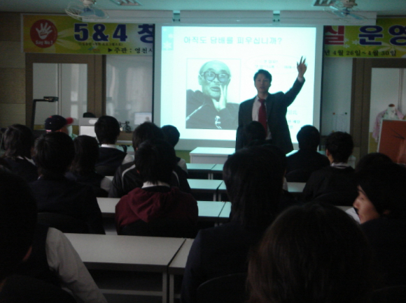 이번 5 and 4청소년 금연교실은 나이어린 청소년들의 흡연율이 계속적으로 증가 하는 추세에 청소년의 건강을 위해 학교 및 학부모의 동의를 받아 학교별로 실시중이다.