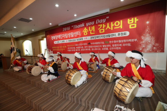경북장애인자립생활센터(센터장 조병기)는 NGO비영리민간단체 공익지원사업으로 실시한 ‘2016 장애인 사물놀이 자원봉사단 양성(중급)과정-신명나樂! 천마의 비상!’프로그램이 매주 금요일(13:30~15:30) 경주시근로자종합복지관에서 5월 13일 첫 수업을 시작으로 11월 11일, 26회기의 공식적인 강의가 마무리되었다.