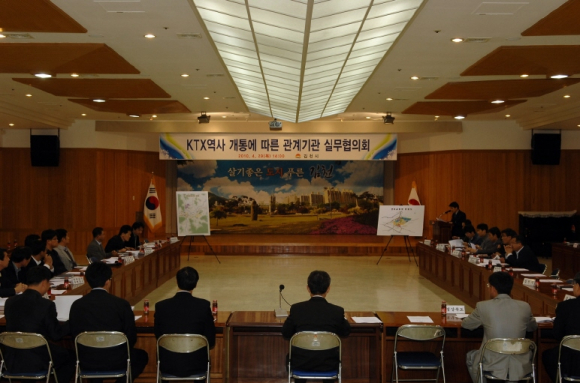 금년 11월초 개통 예정인 경부고속철도 KTX역사 이용객들의 진,출입에 지장이 없도록 우선적으로 간선도로 마무리와 교통편의시설 설치, 유관기관의 관로매설 등을 비롯하여 인근 시․군과 역사간 대중교통 연계방안 등에 대하여 각 사업장별로 체계적인 협조를 요청했다.