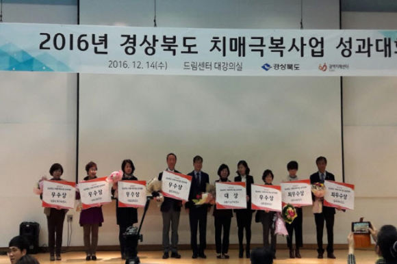 성주군(군수 김항곤)은 12월 14일(수) 10시 경주시 드림센터에서 개최된 2016년 경상북도 치매관리사업 평가대회에서 “우수기관” 상을 수상하였고, 이어 우리마을 치매쉼터 작품전시 평가에서도 “우수기관” 에 선정되어 함께 수상했다.
