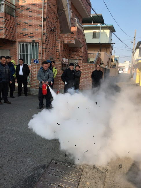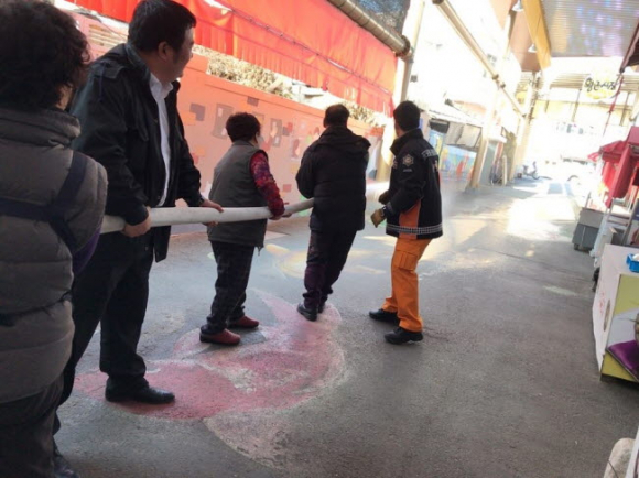 또한, 김천시는 12월부터 전기, 가스, 소방분야에서 전통시장 5개소 화재안전점검을 실시하였으며, 일부 시장 점포의 소화기 압력 미달, 소화기 미비치, 옥내소화전 불량 지적에 따라 분말소화기(3.3kg) 180여개를 구매하여 전통시장에 공급할 예정이다. 더불어 전통시장 내 누구나 화재 발생시 사용할 수 있도록 황금시장, 중앙시장 공용구간 내에 보이는 소화기 5개소 설치를 계획하여 전통시장 화재 예방에 총력을 기울이고 있다. |