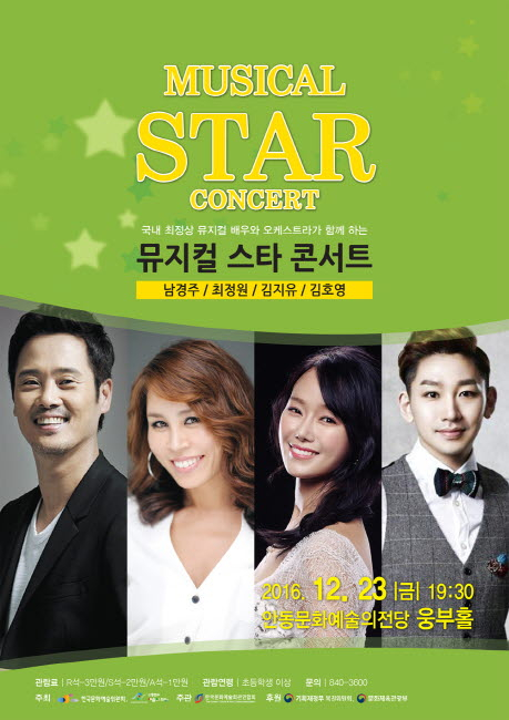 23일은 유명 뮤지컬 스타들이 출연하는 ‘스타콘서트’, 28일 특별한 분을 위한 ‘스페셜 음악회’, ‘아듀2016! 제야음악회’에서는 31일 저녁 9시 경북도립교향악단과 안동시립합창단, 가수 장사익, 바리톤 우주호, 소프라노 마혜선 등이 출연해 2016년을 보내고 새롭고 희망찬 2017년을 기원하는 공연을 펼친다. 현재 기관 및 단체에서 공동으로 티켓을 구입해 매진임박인 공연도 다수 있다. |  | | | ⓒ GBN 경북방송 | |
