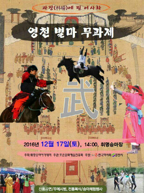 ‘영천 별마 무과제’가 휘명승마아카데미(위원장 유정휘)의 주최, 포은문화예술진흥회 주관으로 신녕면 휘명승마장에서 오는 17일 개최된다.