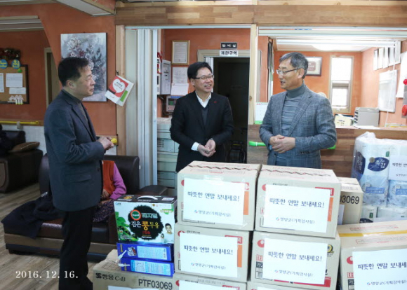 영양군 기획감사실에서는 12월 16일(금) 지역 어르신들이 더 따뜻한 겨울을 날 수 있도록 청기노인복지센터(청노원)에 의복류(내복 7벌)와 생활필수품(라면 10박스, 휴지 9박스, 세제 1박스 등)을 전달했다.