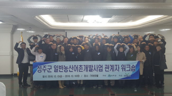 성주군은 2016. 12. 15(목) ~ 12. 16(금) 관내 수륜면 가야호텔에서 성주군 일반농산어촌개발사업 리더협의회 34명, 성주군 발전협의회 등 관계공무원 26명이 참석한 가운데 워크숍을 개최했다.