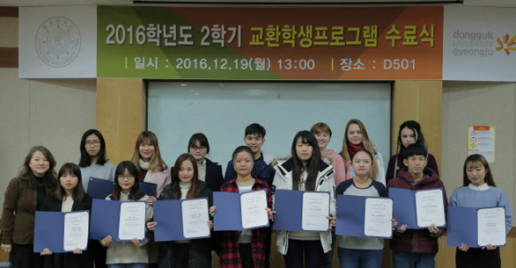 동국대 경주캠퍼스, 2016학년도 2학기 교환학생 수료식 열려