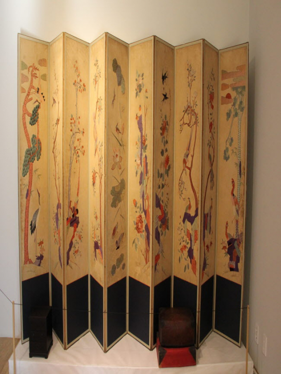 더불어 어린 아기가 오래 살기를 바라며 아기의 머리에 씌워 삿된 것이 들어오지 못하게 막던 모자인 ‘굴레’, 남성들의 출세와 부를 기원하는 ‘흉배’와 ‘주머니’, 여인들의 꿈을 그림처럼 그린 ‘수병풍’ 등도 다양하게 전시된다. 이번 전시에서는 다양한 생활소품도 만날 수 있다. 식구들의 발 크기에 맞게 버선본을 떠 이를 보관하던 버선본주머니(의), 수저주머니(식), 베갯모(주)와 바늘, 골무, 자, 가위, 인두, 다리미, 실 등 조선시대 여인들의 ‘규중칠우(閨中七友)’, 조각천들을 서로 잇대어 면 분할을 통해 조형성과 장식성을 살린 ‘조각보’ 등 일상생활 곳곳에서 만날 수 있는 소품들을 자수로 표현한 작품들이다.