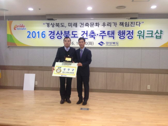 성주군(군수 김항곤)은 2016 경상북도 건축∙주택업무 종합평가에서 공동주택‧주거환경개선 관리 분야 ‘우수기관’으로 선정됐다고 밝혔다.