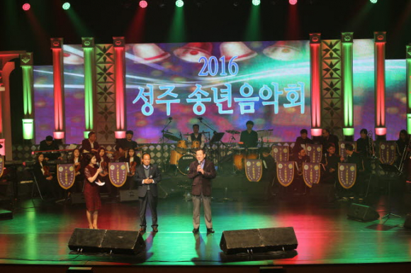 성주군(군수 김항곤)은 12. 21(수) 오후 7시 예술의 전당 성주문화 예술회관 대공연장에서 군민과 함께하는 송년음악회를 개최했다. 이날 공연은 전문MC 강미경의 사회로 진행되었으며, 금잔디의‘여여’, ‘아저씨NO1', 조항조의 ‘사랑찾아 인생찾아’, ‘거짓말’, 조은새의 ‘비비고’, ‘하트하트’, 장윤정의 ‘반창고’, ‘꽃’, 국악밴드 나릿의 ‘령바람', '열두달이 다 좋아', 전자바이올리니스트 조아람의 ’갈무리‘, ’나그네 설움‘, 포크가수 박창근의 ’바람의 기억‘, ’어느 목석의 사랑‘등 다양한 공연으로 군민들의 마음을 훔치는 공연을 선보였다.
