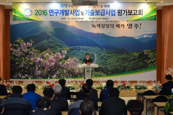 영주시농업기술센터(소장 송인홍)는 23일 농업기술센터에서 한 해 동안 신기술보급사업 추진을 위한 연구개발 성과를 공유하기 위해 ‘2016년 연구개발 및 기술보급사업 평가보고회’를 개최했다.