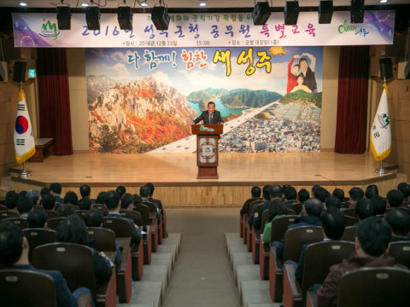 성주군(군수 김항곤)에서는 지난 23일 7급이상 공무원 300여명을 대상으로 한 동절기 민생현안대책 및 공직기강확립을 위한 공직자 특별교육을 실시했다.