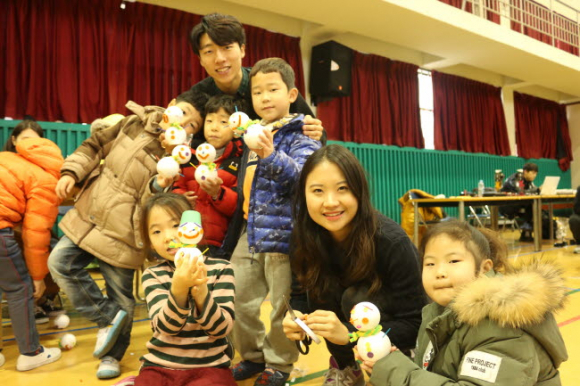 이날 동국대 경주캠퍼스 재능나눔센터에서는 재학생 35명이 월성초등학교 학생 200여명과 함께 모듬북, 마술, 태권도 시범 등 공연과 눈사람 만들기, 종이접기, 전통놀이, 로봇 등 체험 교실을 운영했다.