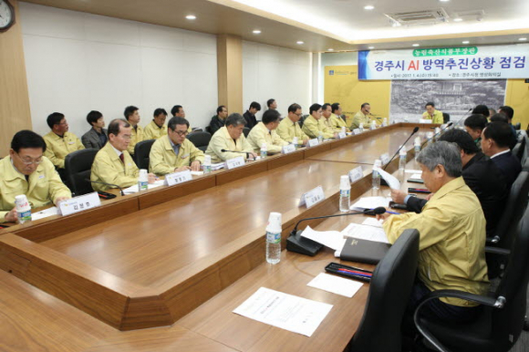 경주시는 지난달 16일 AI 심각단계 시장주재 대책회의에서 소규모 농가의 가금류를 선제적으로 살처분하는 등 예방조치와 양계농가의 방역의지를 고취하였으며, 도내 비접경지역에서는 가장 먼저 거점소독소와 통제초소를 운영하는등 선제적 방역조치를 실시했다