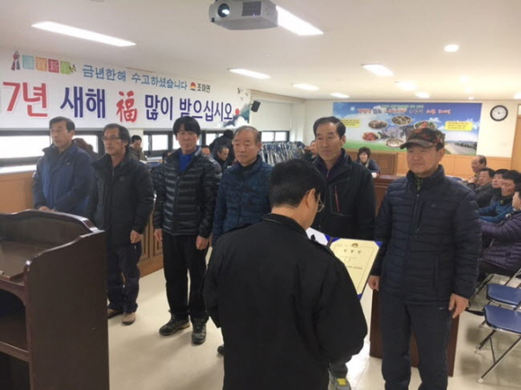 윤장원 면장은 “지난해 크고 작은 행사에 많은 도움을 주신 이장님들께 감사를 드리며 새해에는 더욱 더 살기 좋은 조마면을 만드는데 신임 이장님을 포함한 이장님 모두가 앞장 서 주길 바란다”고 말했다. |