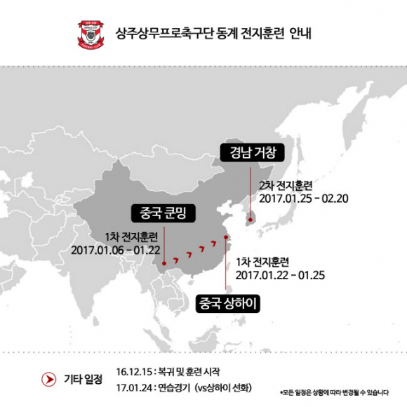 상주상무, 중국 쿤밍 시작으로 17시즌 상위스플릿 향한 담금질 돌입!