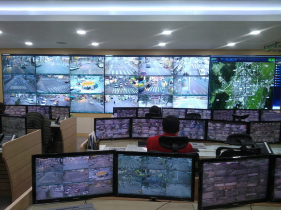 상주 CCTV통합관제센터는 경찰관 1명과 모니터요원 28명이 799대의 CCTV를 24시간 모니터링하고 있다. |