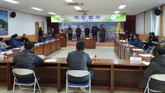 9일 정유년 새해 들어 처음 개최된 이 날 이장회의는, 시의회의원, 관내 기관장 등이 참석한 가운데, 지난 해 연말로 이장 임기가 종료된 7개 마을에서 대동회를 거쳐 추천, 최종 확정된 7명의 이장에게 임명장을 수여했으며, 3명의 신임 이장과 연임하게 된 4명의 이장은 앞으로 3년간 마을 이장직을 수행하게 됐다.