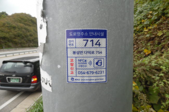 봉화군(군수 박노욱)은 훼손된 도로명주소 시설물의 유지·관리를 위해 ‘도로명주소 안내시설 관리시스템’을 전국 최초로 구축 완료하고 2017년 1월부터 전면 서비스 시행하고 있다. 도로명주소 안내시설 관리시스템은 교통신호등, 전봇대 등에 설치되어 있는 시설물이 훼손, 망실, 부착오류 등으로 문제가 있을 시 전봇대 등에 부착된 NFC전자태그에 스마트폰을 접촉하면 자동으로 고장신고가 가능 하도록 하였다. 또한 개편된 봉화군 홈페이지와 연결되어 있어 도로명주소 검색 및 지도서 비스, 도로명주소 시설물(도로명판, 지역안내판, 기초번호판) 정보표시, 항공 영상 등이 제공되며 NFC기능이 없는 스마트폰의 경우에는 NFC전자태그 하단에 표기된 054-679-6231(종합민원과 토지관리담당)로 전화신고나 봉화군 홈페이지(www.bonghwa.go.kr/juso)에서 신고 가능하다. |  | | | ⓒ GBN 경북방송 | |