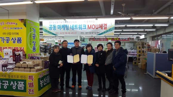 영주농산물 가공마케팅연구회는 18일 리더스마트 대표와 농산물 가공품 판매확대 및 마케팅 활로를 위한 상호 업무협약을 체결하고, 리더스 체인점인 봉화 리더스마트에도 아지매 농산물 가공 상품 판매전을 공동으로 추진하기로 했다.