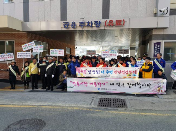 김천시(시장 박보생)는 제250차 안전점검의 날을 맞아 경상북도, 김천소방서와 합동으로 재난안전네트워크 단체 회원 200여명이 참석한 가운데 평화시장에서 안전한 설 보내기 캠페인 및 전통시장 장보기 행사를 가졌다.