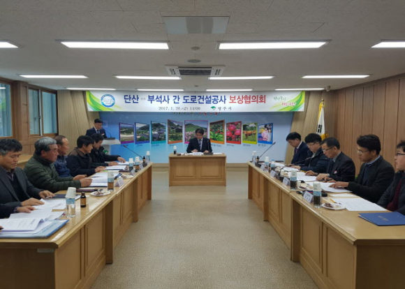 영주시(시장 장욱현)는 20일 시청 제2회의실에서 경북〜충북〜강원 3도 연결 국가지원지방도 28호선(단산〜부석사) 건설공사 편입토지 보상지원을 위한 보상협의회를 개최했다.
