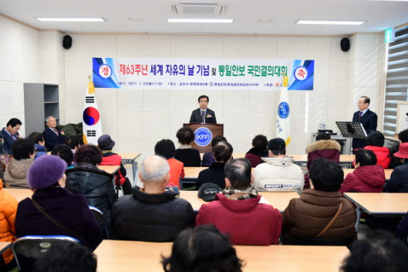 통일안보중앙협의회 김천시지부(지부장 김진옥)는 23일 오전 11시 김천시문화회관에서「제63주년 세계자유의 날」기념식을 지부회원 100여명이 참여한 가운데 개최했다.