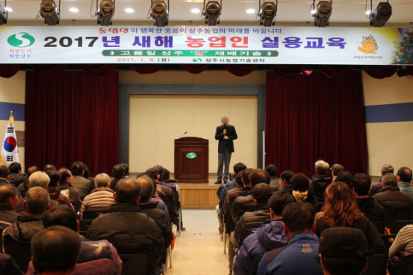 상주시농업기술센터(소장 육심교)는 농업환경의 급격한 변화에 대응하고 친환경농업의 확산과 농가소득 증대를 위한 “2017년도 새해농업인실용교육을 1월 9일부터 1월 24일까지 감 등 12개 품목 22회에 걸쳐 상주시 전역에서 실시해 총 2,580명의 농업인이 참여한 가운데 성황리에 마무리됐다.