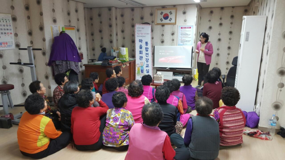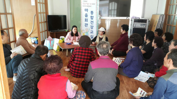 |  | | | ⓒ GBN 경북방송 | | 마을회관 통합건강교실은 소재지 중심의 마을회관 교육을 벗어나 모든 마을회관 주민에게 건강교육의 균등한 기회제공으로 건강불평등을 해소하고, 주제별 교육자료를 개발하고 공동 사용하여 교육의 일관성을 확보하며 4주 지속 프로그램운영을 통해 주민들이 건강에 대한 인식을 새롭게 하고 자가 건강관리 역량을 향상시켜 주민들의 만족감이 높다.