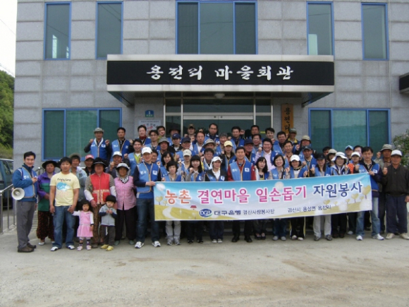 대구은행 경산사랑 봉사단(단장 대구은행 경산영업부장 송성윤) 60여명은 지난 15일(토) 농촌자매결연 마을인 용성면 용전리를 방문하여 일손돕기 일일봉사활동을 실시하였다.