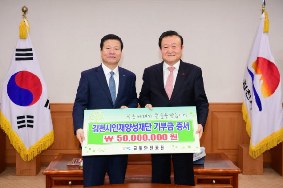 김천의 교육발전과 글로벌 인재육성을 위해 교통안전공단(이사장 오영태)에서 김천시인재양성재단(이사장 박보생)에 장학기금 오천만원을 기탁했다.