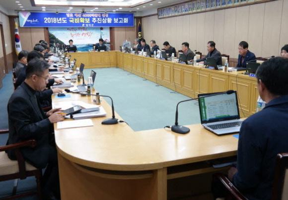 영덕군은 지난 13일 ‘2018년도 국가투자예산 확보 보고회’를 열어 지역 현안사업들을 점검하는 등 내년도 국비확보 총력대응의 강한 의지를 드러냈다. 이날 보고회에서는 주요 사업의 진행상황을 점검하고 향후 나아가야 할 방향과 국비확보 로드맵을 제시했다.