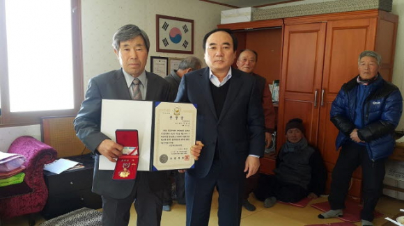 2017년 2월 13일(월) 용암면 당안경로당에서 6. 25전쟁 당시 헌신 분투하시어 조국을 지키신 故문효승(文孝承)씨의 화랑무공훈장이 유족들에게 수여되었다.
