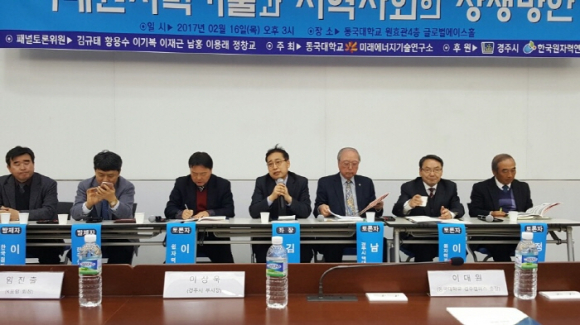 주제발표 이후 발표자들과 이재근 원자력아카데미 원장, 남홍 경주핵대책시민연대 공동대표, 이용래 원자력과학단지 경주유치단장, 정창교 전)경주시 시의원이 패널로 참석해 토의를 펼쳤다.