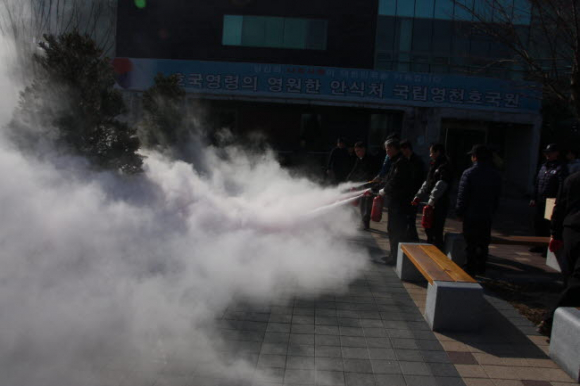 국립영천호국원-영천소방서 합동으로 소방훈련 실시
