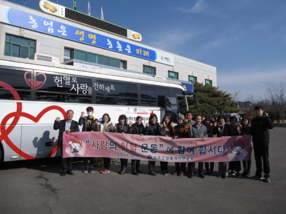 성주군생활개선회(회장 박덕임)는 다가오는 따뜻한 봄을 맞이하고 아름다운 체온나눔으로 소중한 생명을 살리기 위한 「사랑의 현혈운동」을 임원 및 회원 50여명이 참석한 가운데 2월 21일 농업기술센터에서 실시하여 훈훈한 정을 갖게 했다.