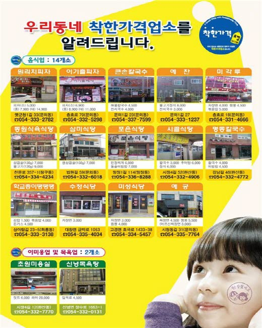 또한 착한가격업소 16개소에 대해서는 옥외가격 표지판, 종량제 봉투 등 다양하고 합리적인 인센티브 물품 제공으로 착한가격업소의 만족도를 향상시키고 타 업소의 적극적인 동참을 유도할 계획이며 운영 내실화를 위해 가격 인상여부, 서비스 상태 등 수시 모니터링을 강화하고, 2017년도 착한가게 추가지정으로 개인 서비스요금 안정화에 주력할 것이다.