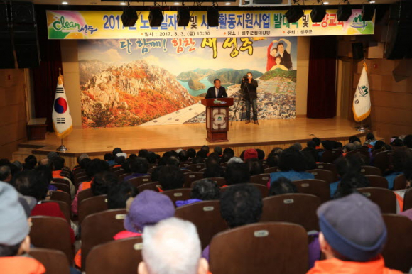 성주군(군수 김항곤)은 2017년도 노인일자리 및 사회활동 참여자 300여명을 대상으로 3월 3일 오전 10시 군청 대강당에서 “발대식 및 소양교육”을 실시했다.
