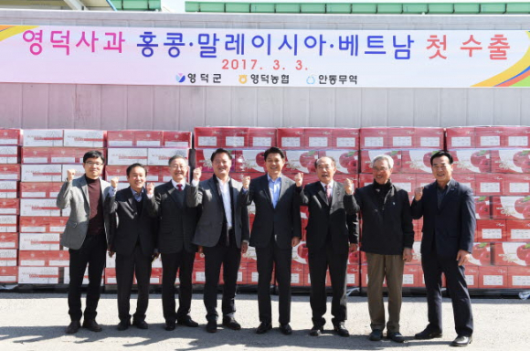 이번 사과 수출물량은 15톤으로 지난해 영덕복숭아의 첫 홍콩 수출을 계기로 해외시장 개척에 대한 영덕군과 영덕농협, 사과 공선회의 지속적인 노력의 결실로서 까다롭고 세밀한 농산물 수출검사 기준을 통과하면서 홍콩을 비롯한 말레이시아, 베트남 등 동남아 3개국에 화려한 첫 나들이를 시작했다.