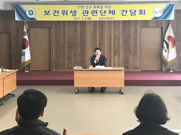 김천시(시장 박보생)가 올해 15만 인구회복을 위해 전 행정력을 집중하고 있는 가운데 김천시보건소에서는 3월 6일 보건위생 관련단체 임직원들과 간담회를 갖고 15만 인구회복에 보건소가 앞장 설 것을 결의했다.