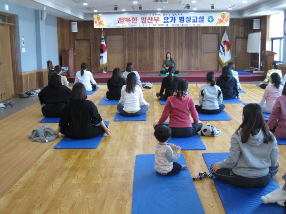 김천시에서 임산부들에게 『행복한 임신과 출산』지원사업의 일환으로 임산부 요가·명상교실은 매주 월,수요일 2회 운영하고 있는데 요가는 임산부에게 분만시 통증을 완화하고, 마음의 안정과 산후회복에 도움을 줄 수 있어 임산부들의 호응이 좋아 지난해에 이어 3월~7월, 9월~10월까지 총 7개월간 운영할 계획이다.