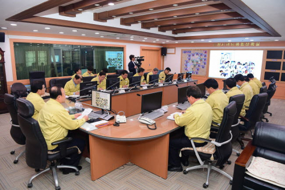 김천시(시장 박보생)은 지난 3월 10일 김천시청 재난종합상황실에서 읍면동장을 대상으로 긴급영상회의를 개최했다.