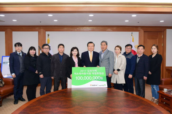 지난 3월 13일(월) 김천시청에서 김천시(시장 박보생)와 초록우산 어린이재단 경북지역본부(본부장 김창연), 김천후원회원(회장 김장록)들이 참석한 가운데 김천시 관내 경제적 빈곤, 가정폭력 등 복합적인 문제를 가진 아동들에게 올 연말까지 후원금 1억원을 지원하는 약정식을 가졌다.