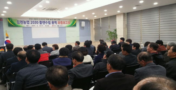 김천시(시장 박보생)는 급변하는 농업여건변화에 선제적으로 대응하고 ,또다른 50년-100년을 준비하고 설계하기 위해 김천농업 2030플랜수립의 최종보고회를 2017.3.15.일 농업기술센터 회의실에서 가졌다.