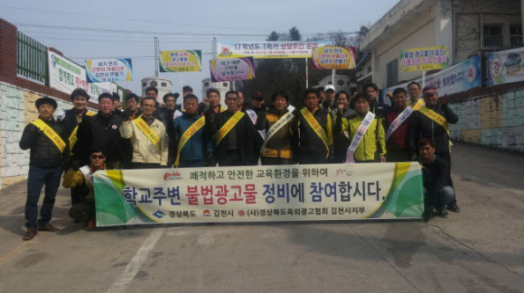 김천시(시장 박보생)는 개학기를 맞이하여 16일 오후 2시 모암초등, 김천여고, 김천여중 등 3개교 일원에서 ‘개학기 학교주변 불법광고물 근절을 위한 민‧관합동 정비 및 거리 홍보캠페인’이 펼쳐졌다. 이날 행사는 경상북도, 김천시를 비롯한 경상북도옥외광고협회김천시지부회원, 지역주민 등 약 40여명이 참석했으며, 개학기 학교주변 불법광고물을 사전에 정비하여 청결한 학교 주변 환경조성을 위해 마련되었다.