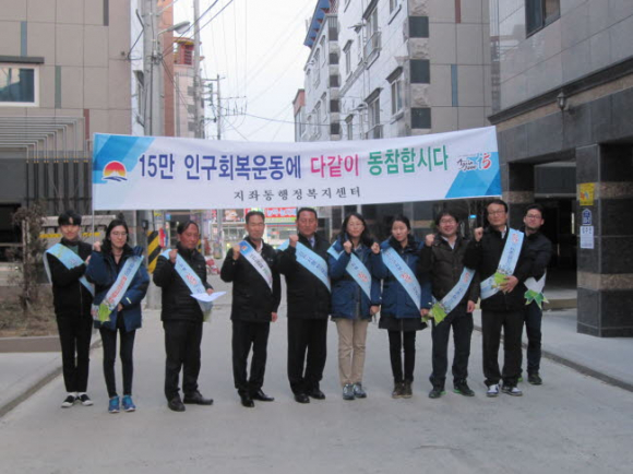 지좌동행정복지센터 직원 일동은 거주자들의 퇴근시간에 맞추어 야간에 이루어졌으며, 김천시의 인구증가 목표인 15만 인구회복운동의 의미를 지역민에게 설득력있게 알리고 인구증가 의지를 확고히 하기 위하여 이번 캠페인을 전개하였다. 또한, 현장전입접수처를 설치하여 저녁에 퇴근하는 직장인들을 대상으로 전입독려를 실시하며 인구증가의 효과전달 및 주민의 애로사항을 청취했다.