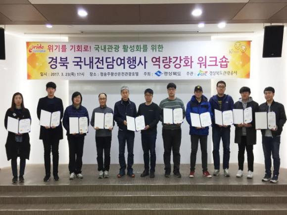 23일 저녁 개최된 워크숍에서는 국내전담여행사 지정서를 수여하고, 2017년도 경북 중점육성 관광지 소개 및 상품운영지원 등 국내전담여행사 운영사업 방향을 설명하였으며 관광상품개발 아이디어 등 관광활성화를 위한 활발한 토의가 이루어졌다.