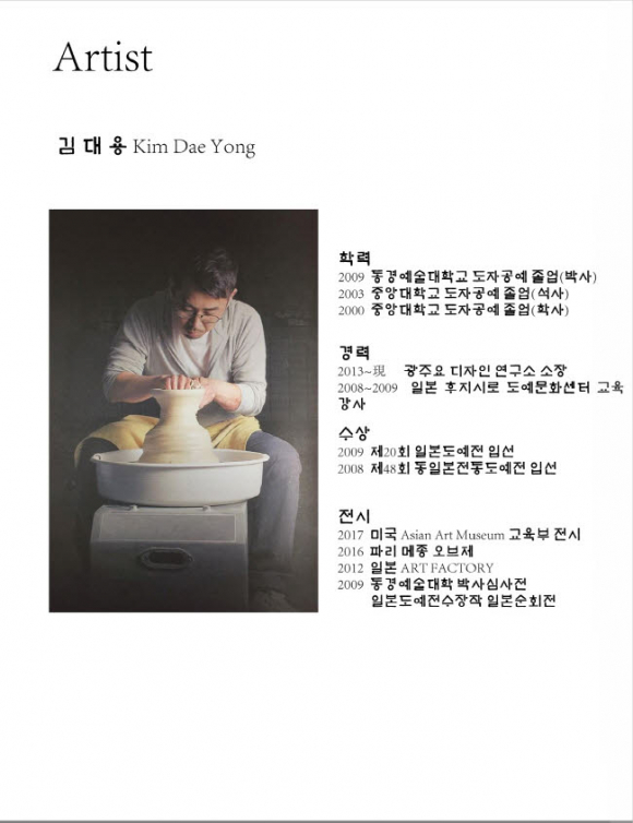 갤러리청와 김대용 도예전 전시.