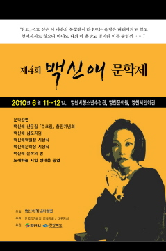 영천출신의 여류 소설가 백신애(1908~1939)를 기리고 기념하기 위한 ‘백신애 문학제’가 11일부터 이틀간 영천시청소년수련관, 영천문화원, 영천시민회관 일원에서 다채로운 행사로 열린다.